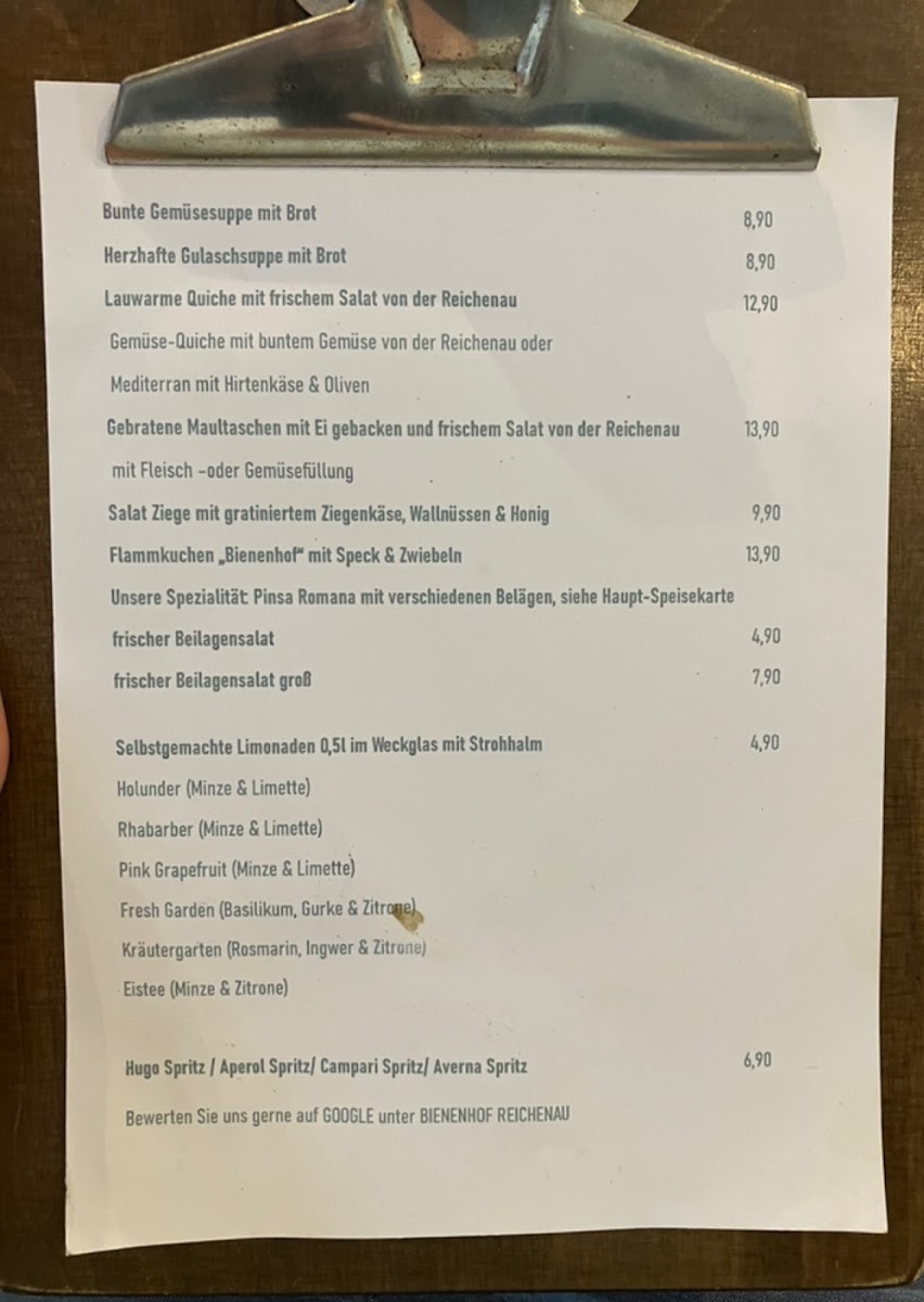 Bienenhof Menu